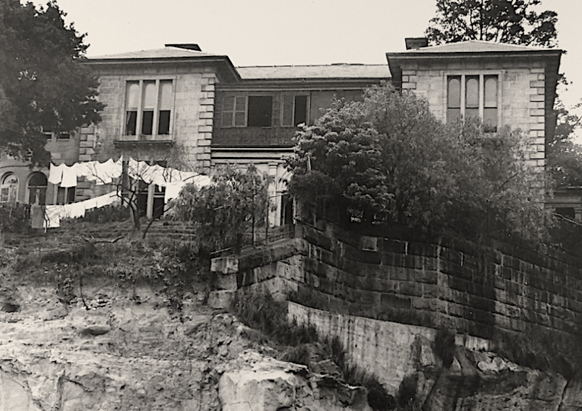 Lesley lived at Bomera (One Wylde Street) from 1937 to about 1941, when the Navy resumed the building while joining the point to what is still called Garden Island. Some tenants were still in residence, as the line of washing shows.